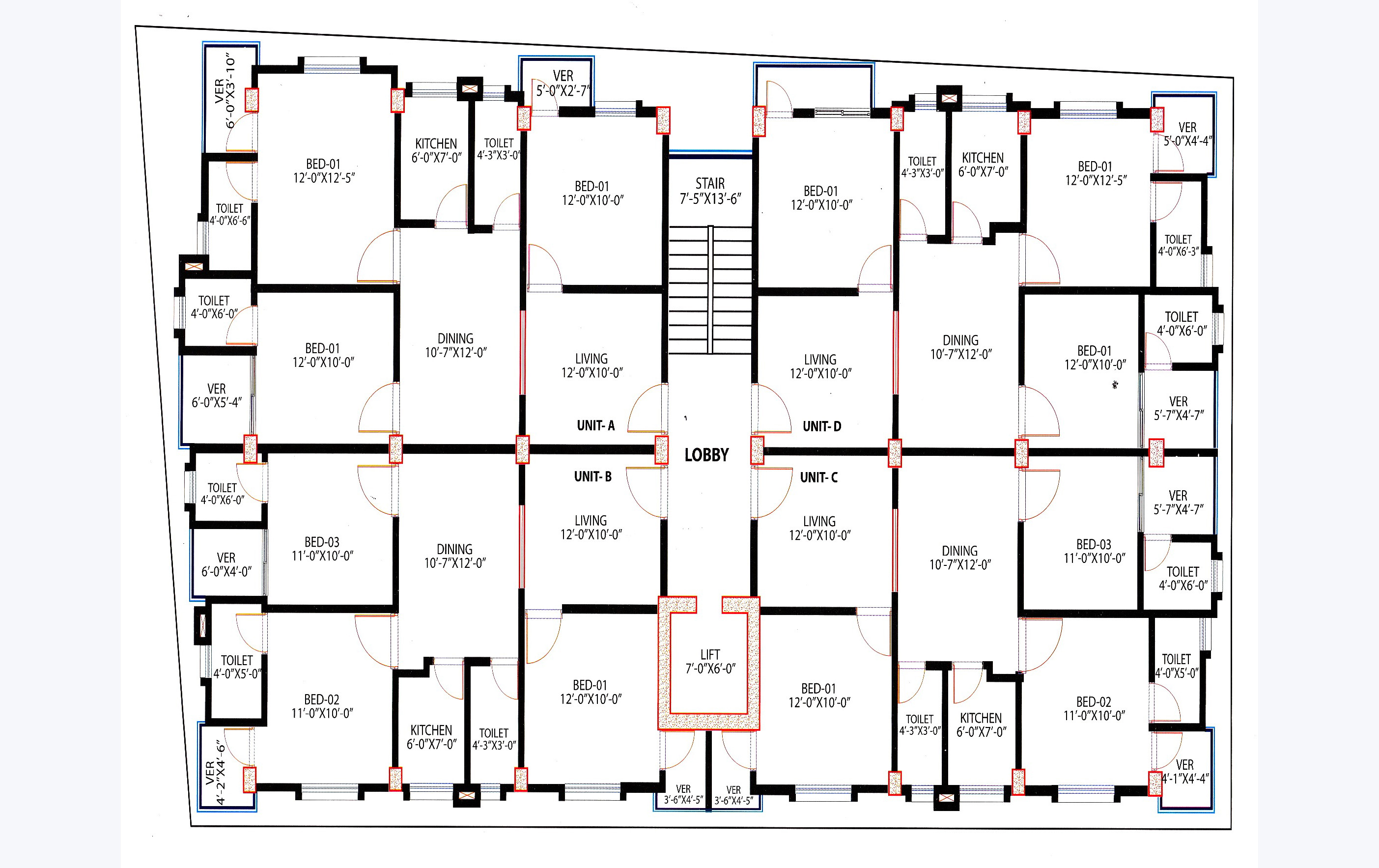 01 Drawing, 01Dining, 03 Beds, 02 Baths, 03 Balconies and 01 Kitchen.