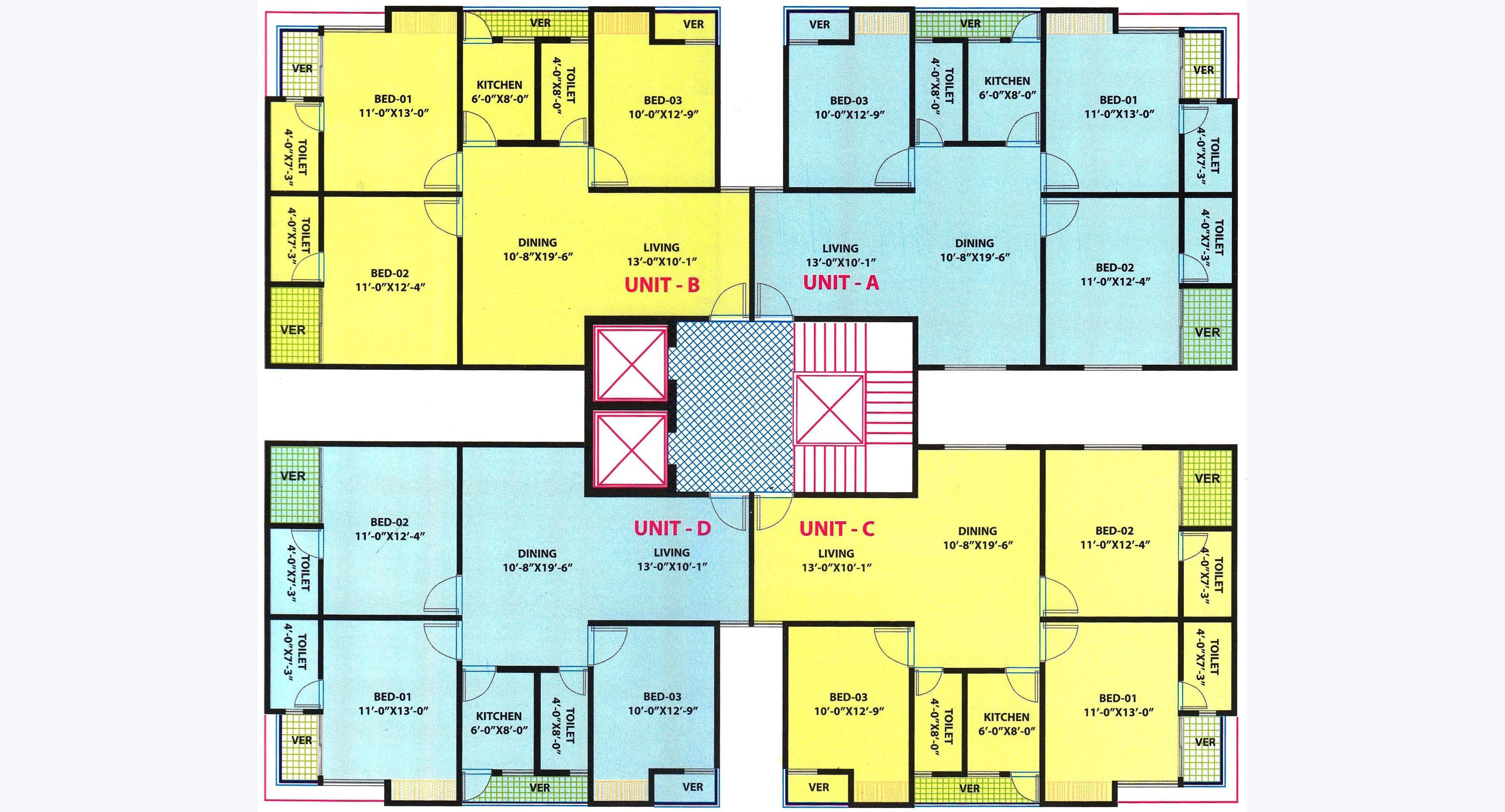 Unit A 1400, Unit B 1400, Unit C 1400, Unit D 1400